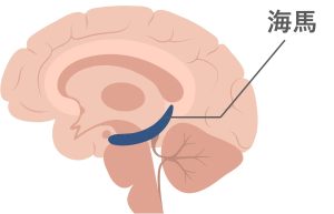 ※海馬は側頭葉の内側に位置しており(左右共に存在)、直径1㎝で長さ5㎝程の大きさ。