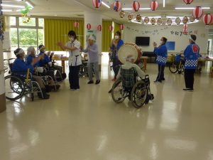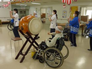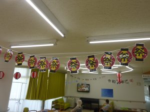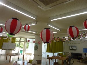 フロアーに提灯を飾り、皆さんで盆踊りをしました。